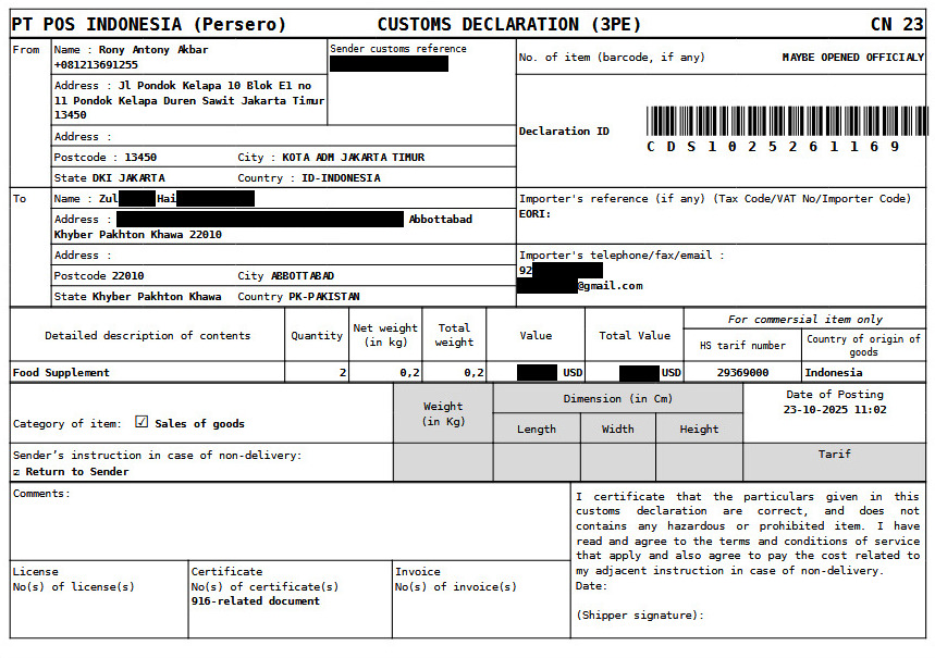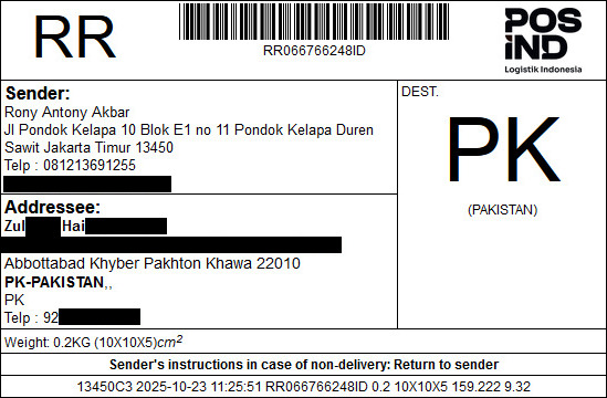 The buyer told us via WhatsApp that they already received the package.